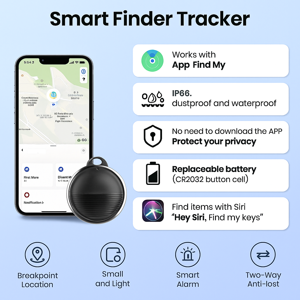 No more wasting time searching for keys, wallets, or bags! With a 100dB loud alert and Bluetooth range up to 164ft, the iFind Mini GPS helps you locate your belongings in seconds. Compact and easy to use, it integrates directly with your iPhone via the Find My app – no subscriptions or complicated setup needed.